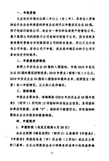 關(guān)于組織申報2019年度安慶企業(yè)50強的通知