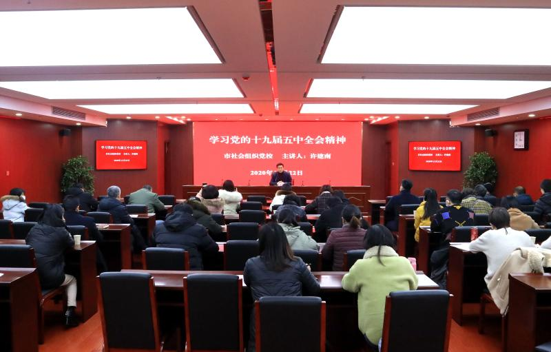 市民政局黨組成員、副局長(zhǎng)、市社會(huì)組織綜合黨委書(shū)記許建南主講十九屆五中全會(huì)精神,并對(duì)社會(huì)組織黨建工作提出要求。